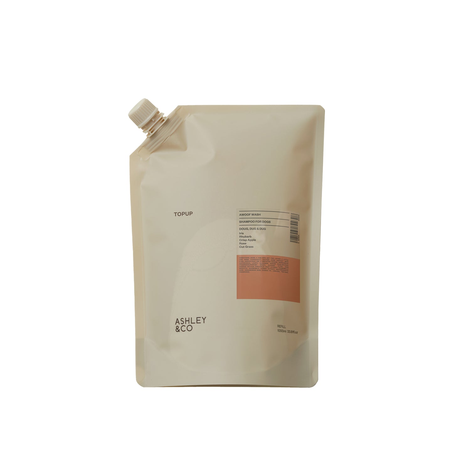 - Use Ashley & Co's Topup to refill your Awoof Wash. A dog is man’s best friend, especially when clean! This 100% natural formulation is loaded with beneficial plant-based oils and extracts that cleanse and soothe pup’s coat, retaining its natural doggy goodness.