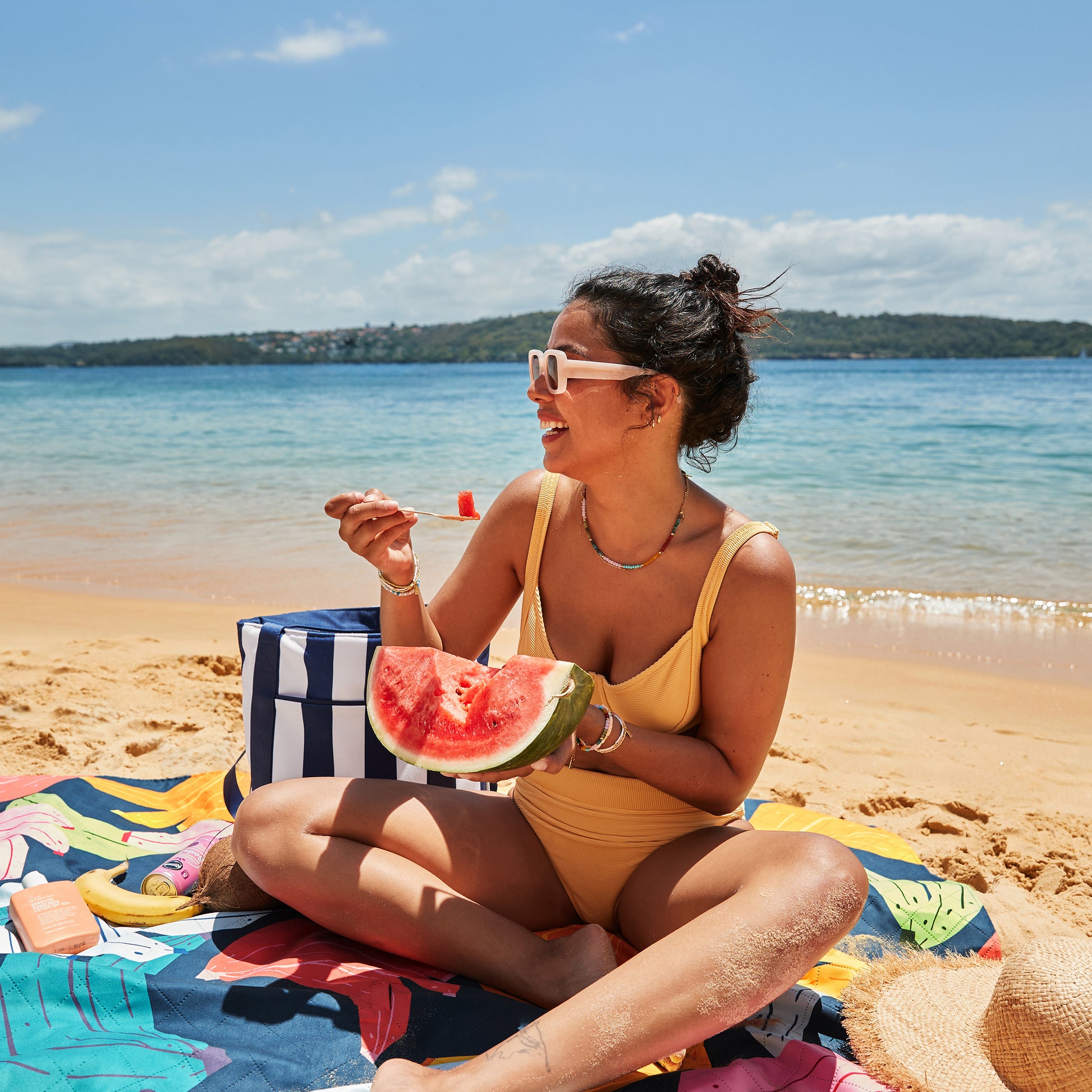 The top layer is made from Dock & Bay's signature quick dry material, so no stress if someone spills their squash.