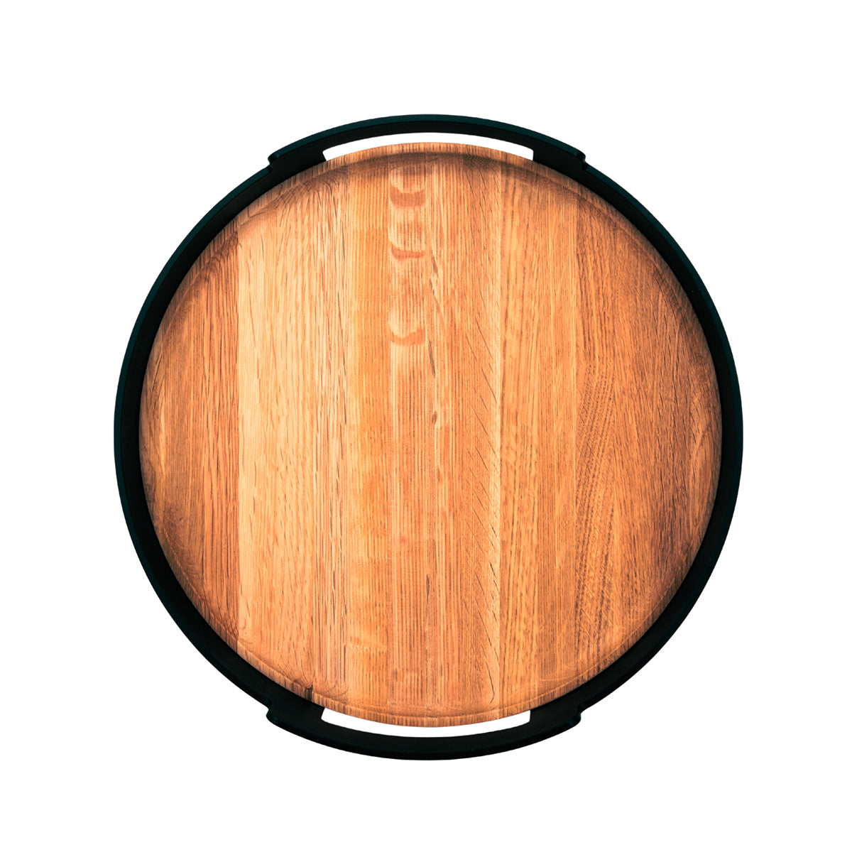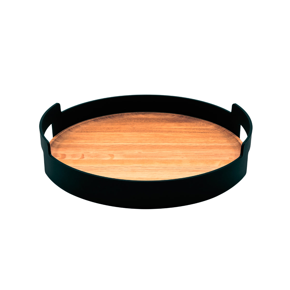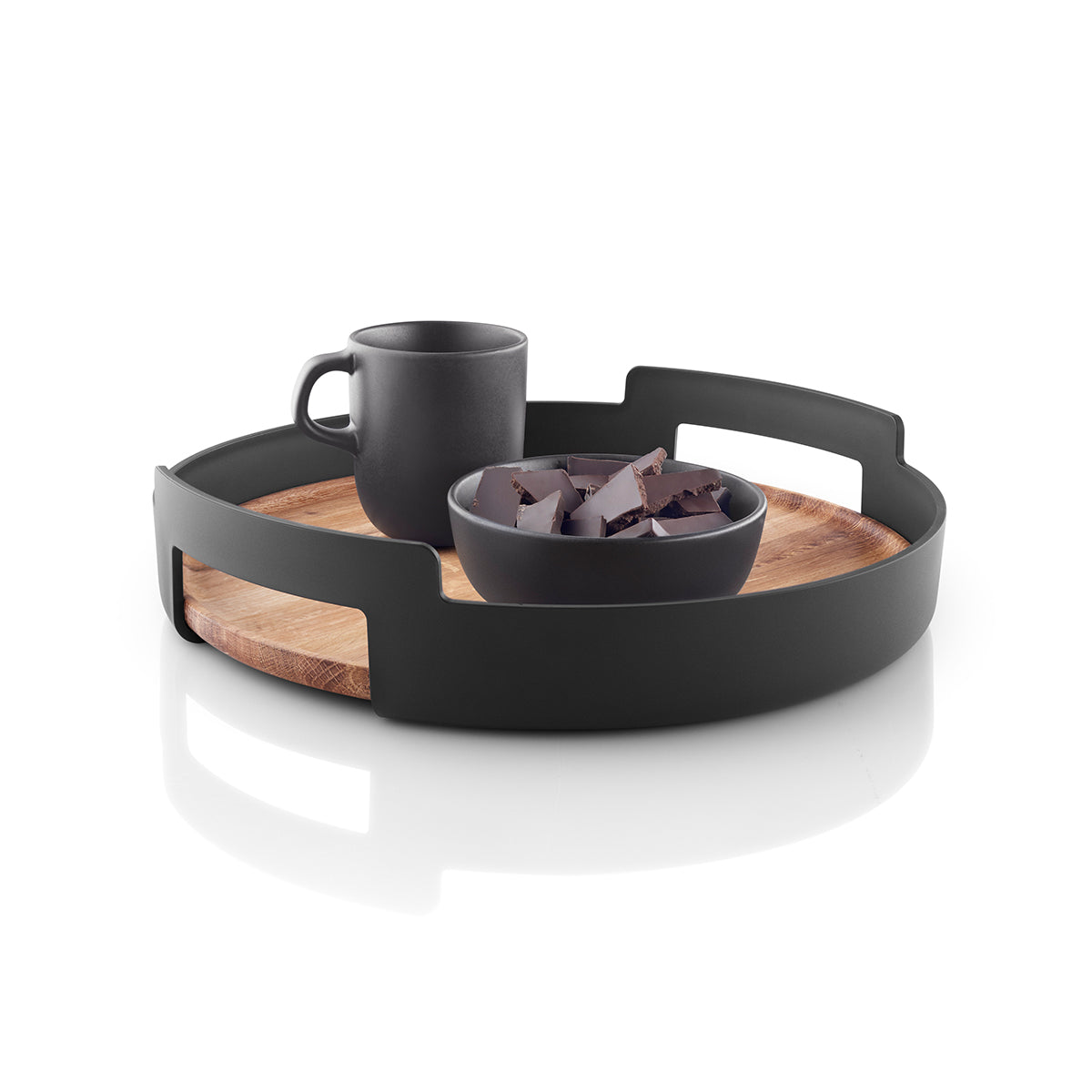 - The serving tray is both stylish and practical with raised edges and handles that ensure a secure grip.