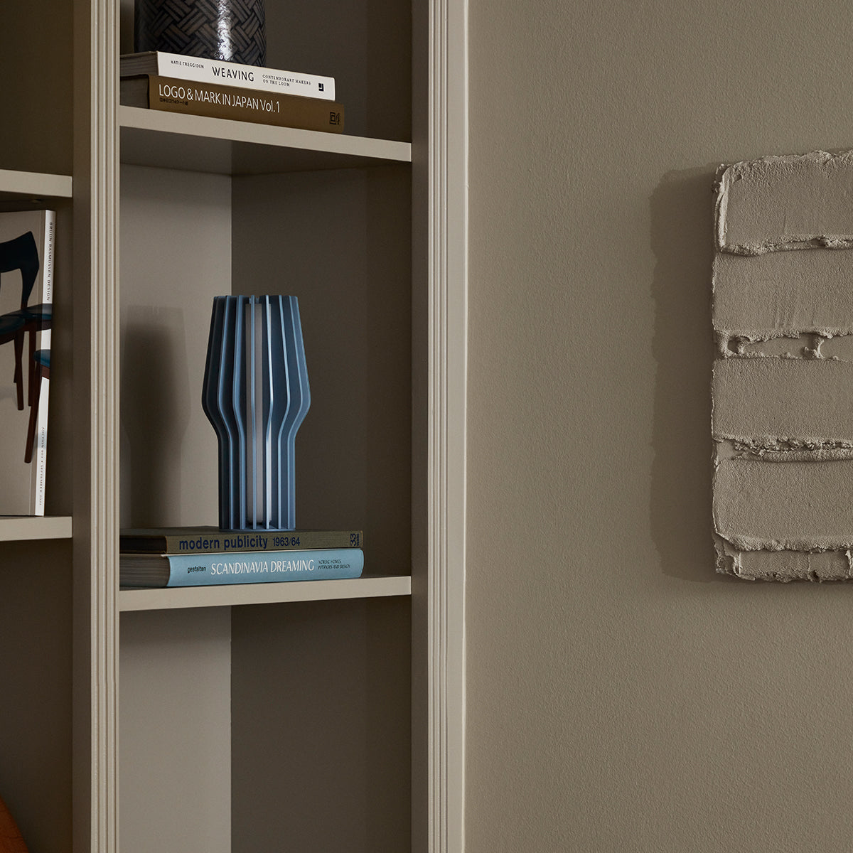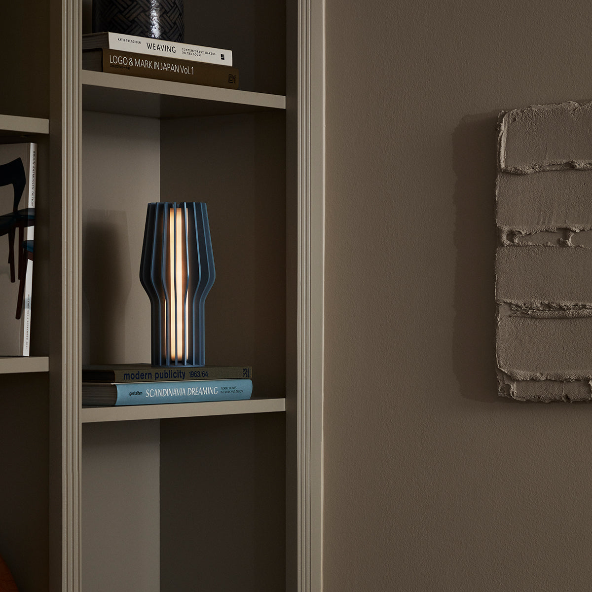 Sculptural and decorative table lamp. 25cm, dusty blue.