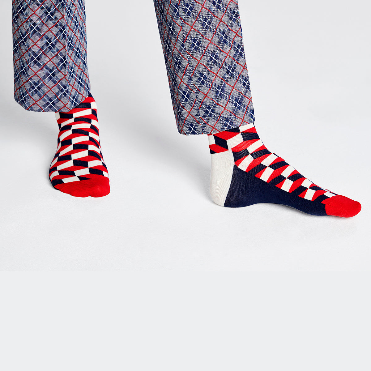 Add a splash of red, white and blue to your sock drawer with the Stripe gift box. Filled with three pairs of socks in original designs, this matching box features Polka Dot, Stripe and Filled Optic styles for a unique and colourful combination.