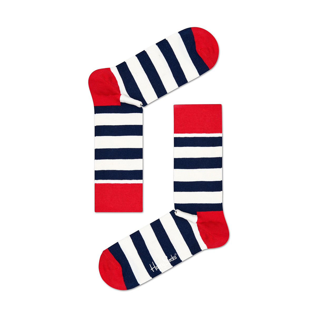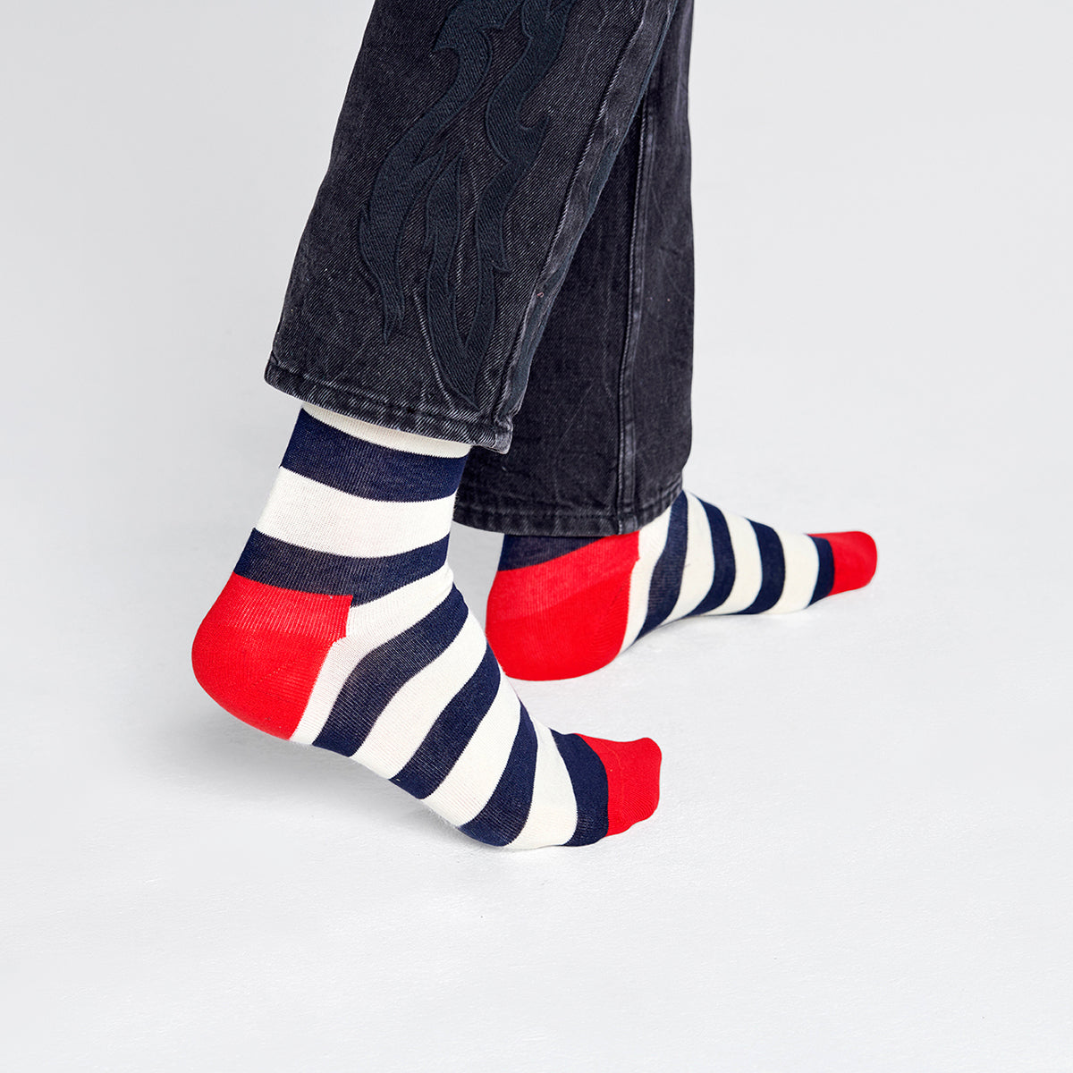 Like the Ancient philosophers used to say: When it’s time for a new, stylish pair of socks, it’s time for a pair of Stripe socks (sources: not found). This pair of white socks is covered with dark blue lines , contrasted by red toes, heel and top band.