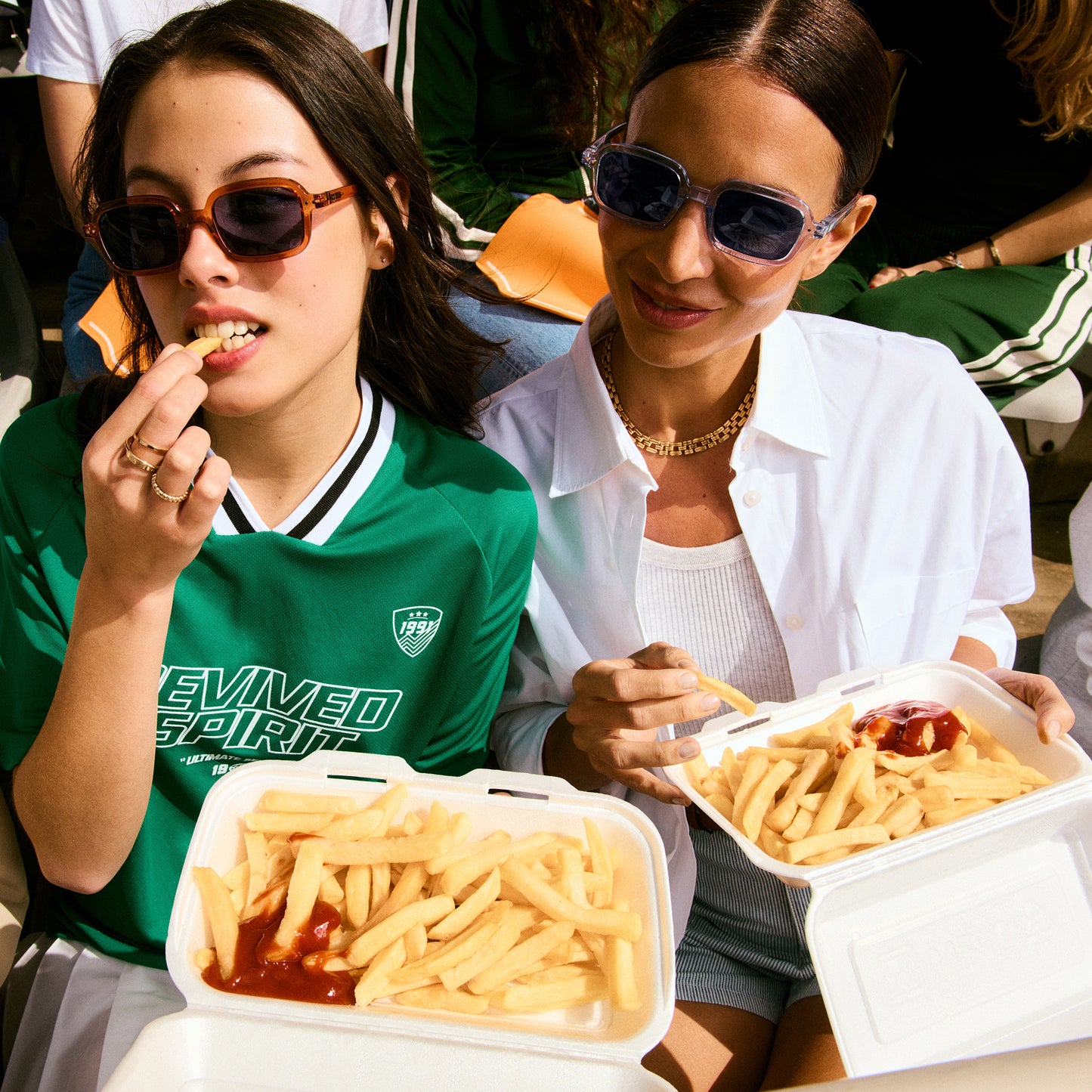Each glossy pair reflects the thrill of these events by emphasising bold colours, shapes and materials. Enjoy these moments in style, whether in front of the field, behind your newspaper, or even in front of your TV.