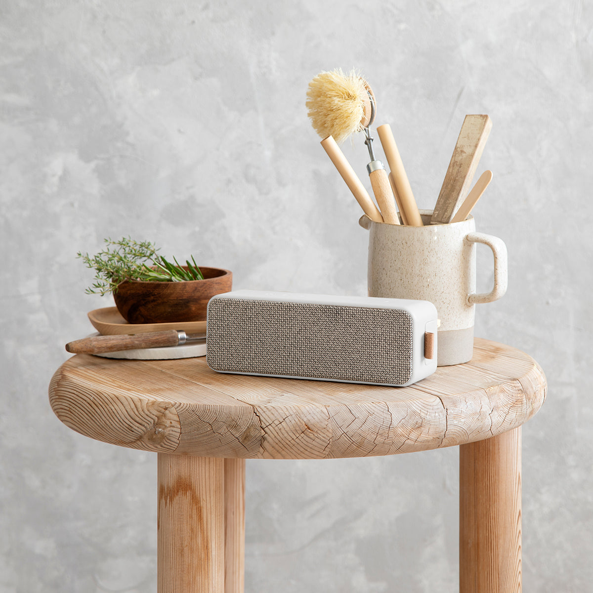 - Place it flat or stand it up – aBOOM delivers music with a punch.
