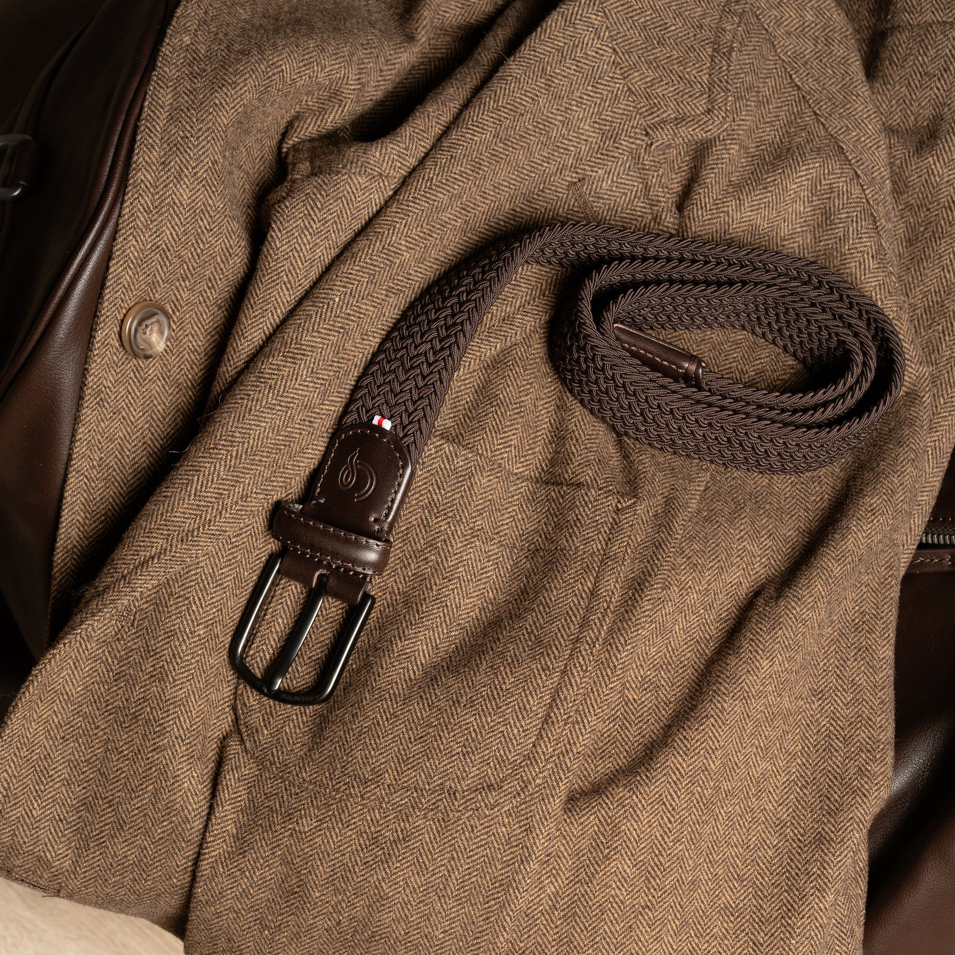 Premium braided belt with monochromatic design. Black buckle.