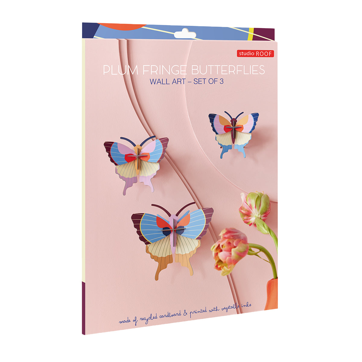 Wall Art Butterflies (A4) Set of 3 Plum Fringe Butterfly