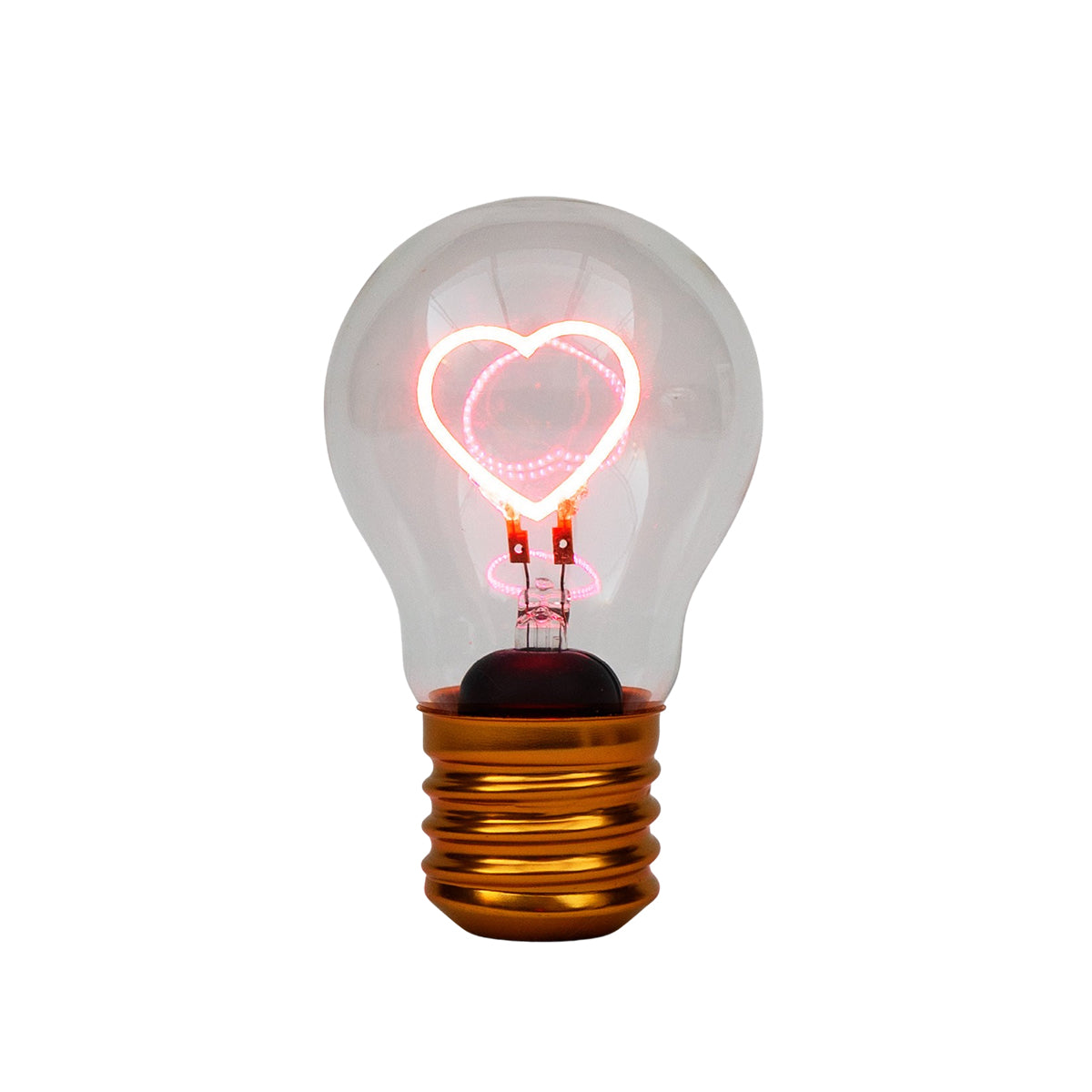 - Tiny LEDs recreate the look and feel of a traditional Edison bulb with a shocking pink, heart shaped filament.