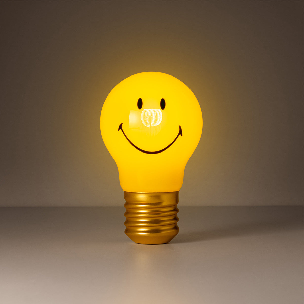Standalone lightbulb with rechargeable battery and iconic Smiley® design.