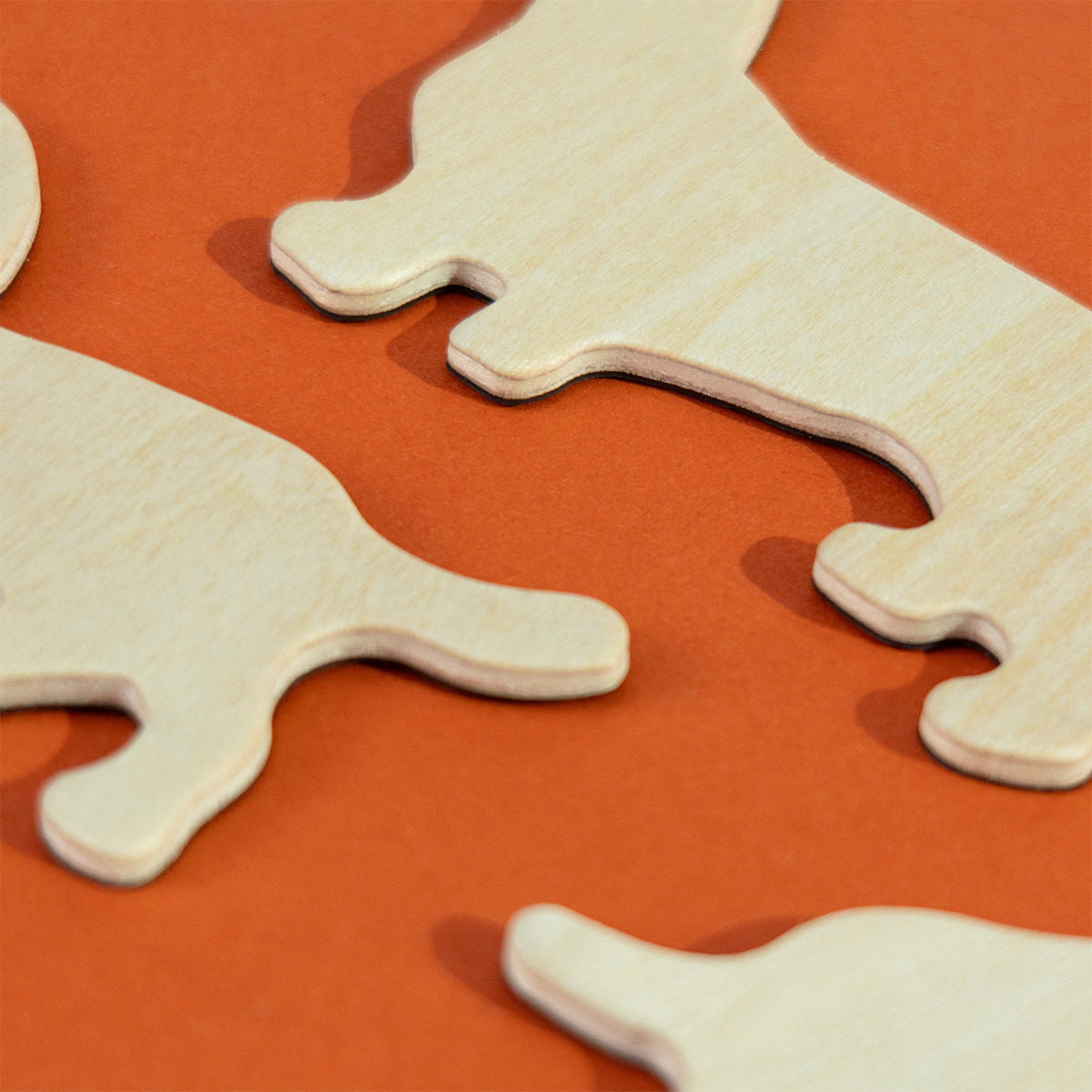 - Wooden pet silhouettes with soft rubber magnet sheet backing.