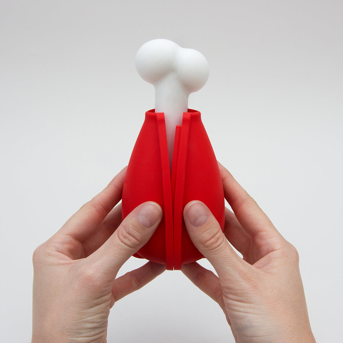 - The silicone section splits in two so you can place the plastic bone inside, slot the two halves together, then fill with water from the top.