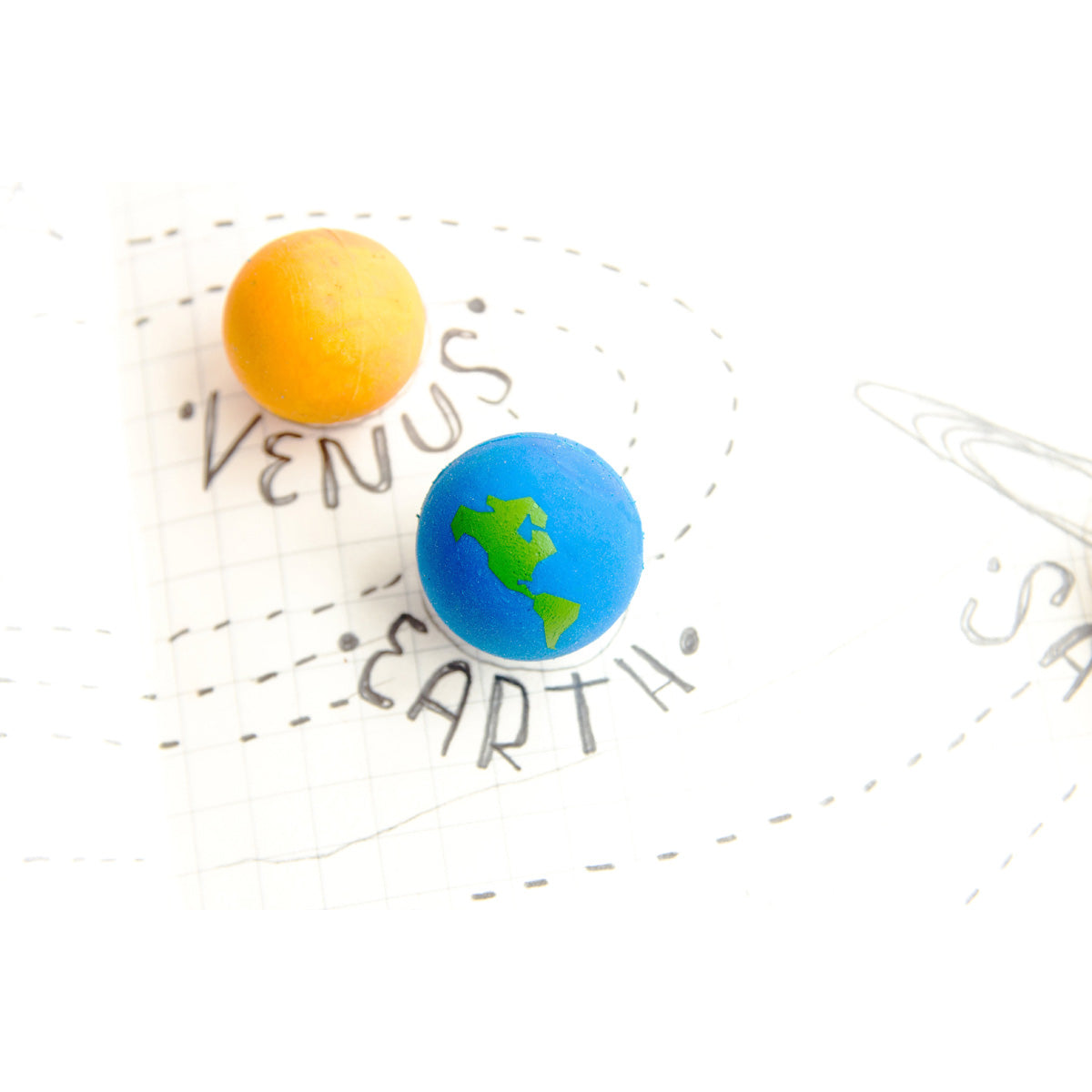 Rubber planet-shaped erasers. An educational gift for budding astrophysicists.
