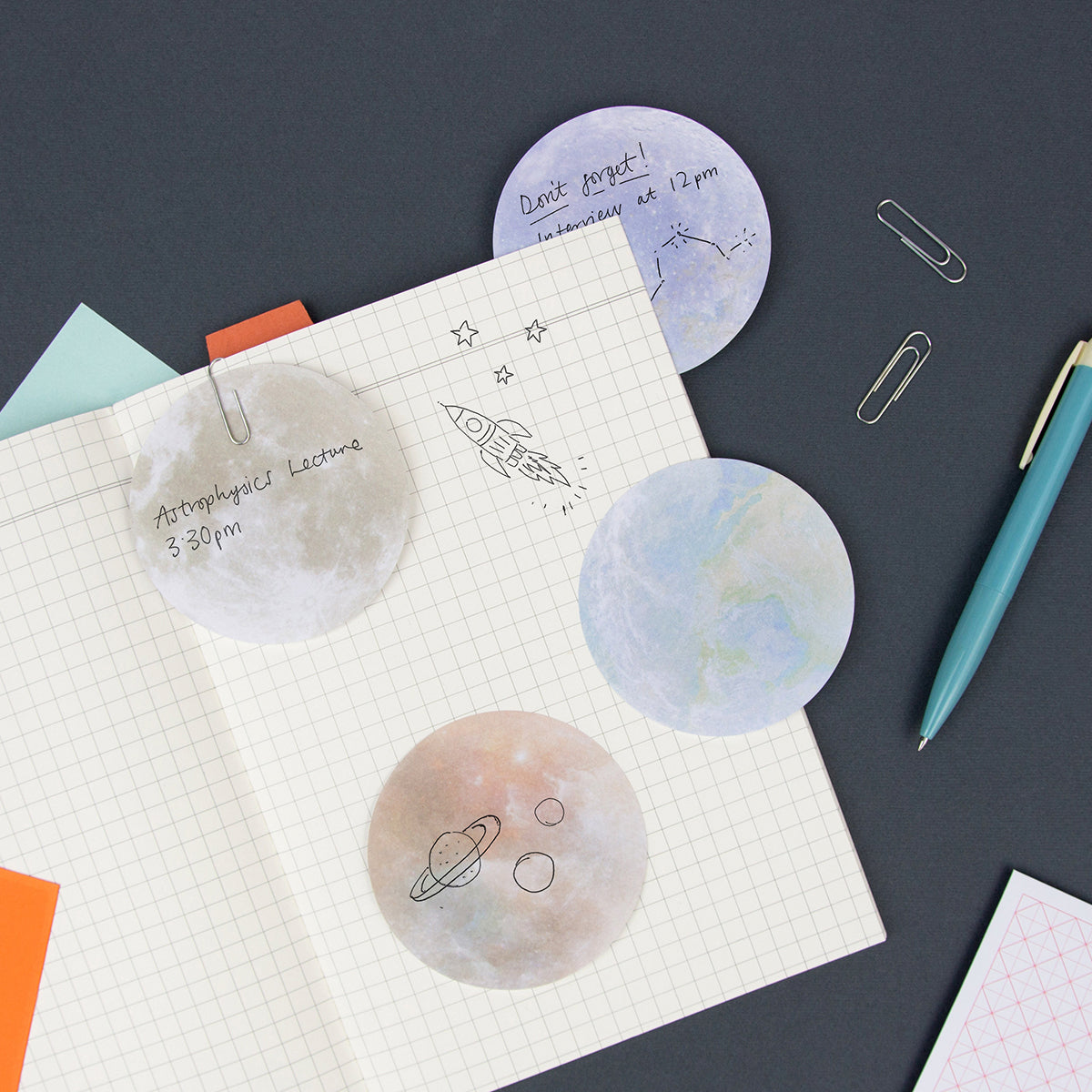 - Realistic planets printed onto round sticky notes. Who doesn't want that?