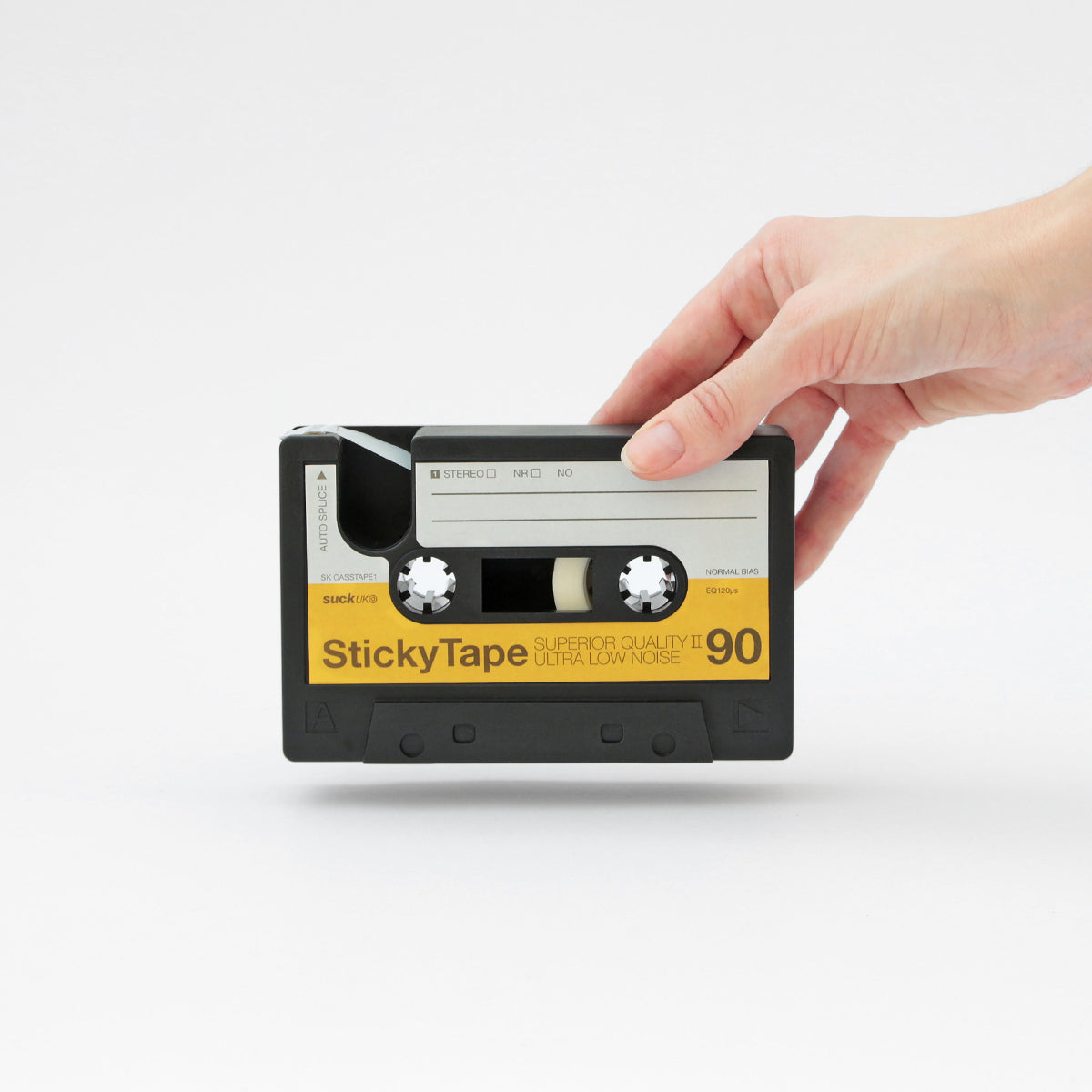 - So retro it hurts! Oversize cassette tape reimagined to hold and dispense sticky tape.