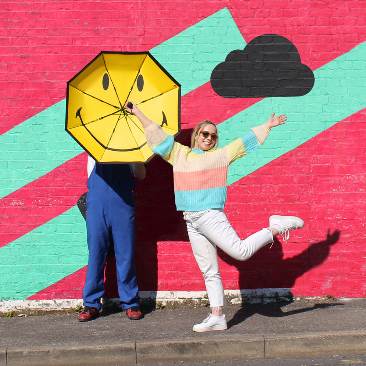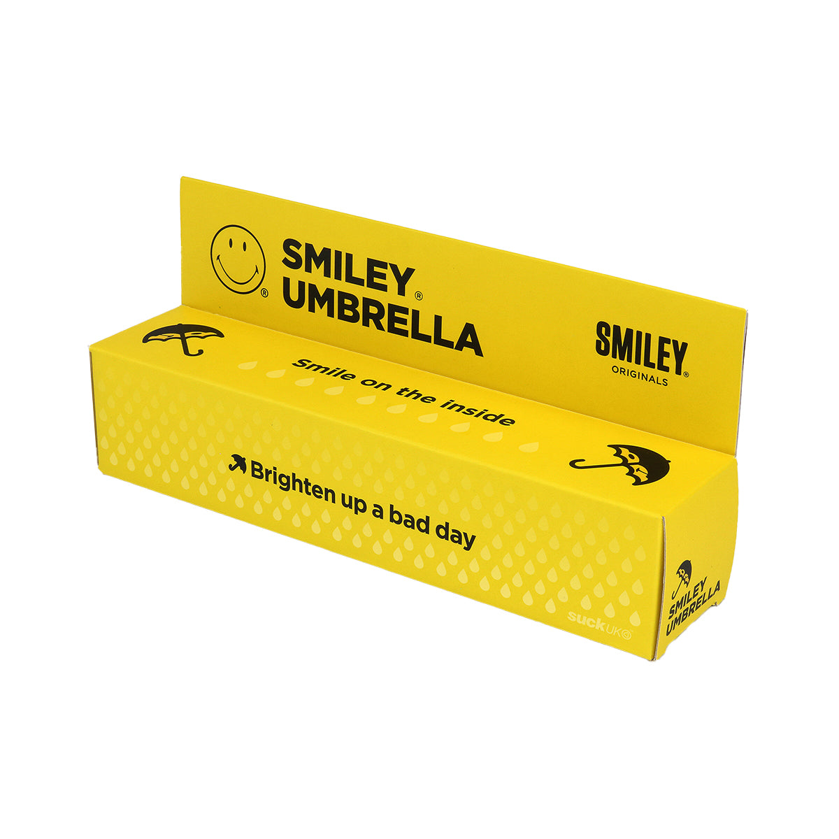 Turn a rainy day into a display of full on happiness. This plain and inconspicuous classic black folding brolly opens to reveal a surprise inside. The iconic black and yellow Smiley®. A smile is powerful thing.