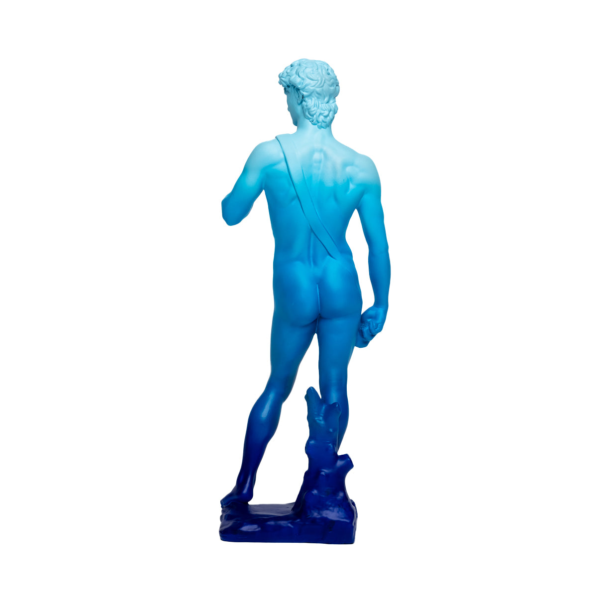 A colourful, bold statuette reproducing Michelangelo's masterpiece, David.