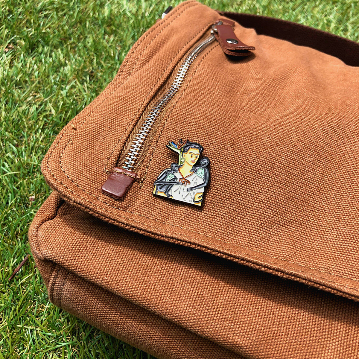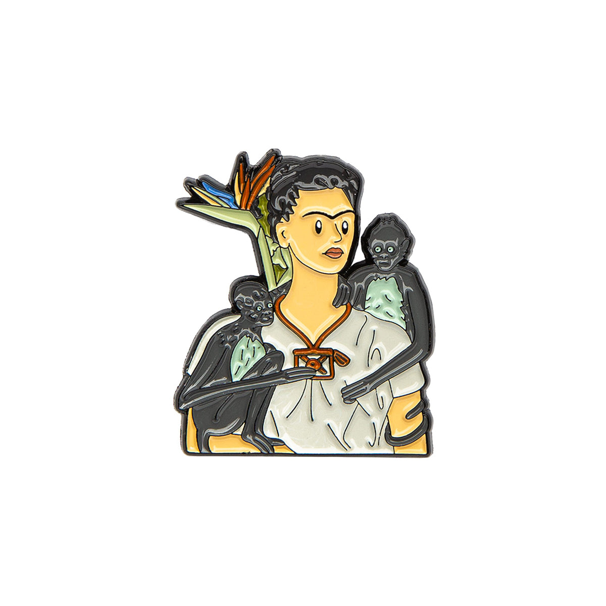 Enamel pin featuring Self-Portrait with Monkeys by Frida Kahlo.