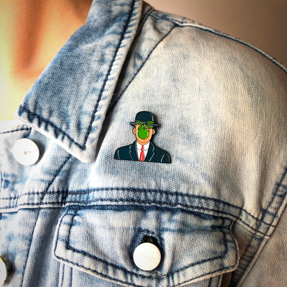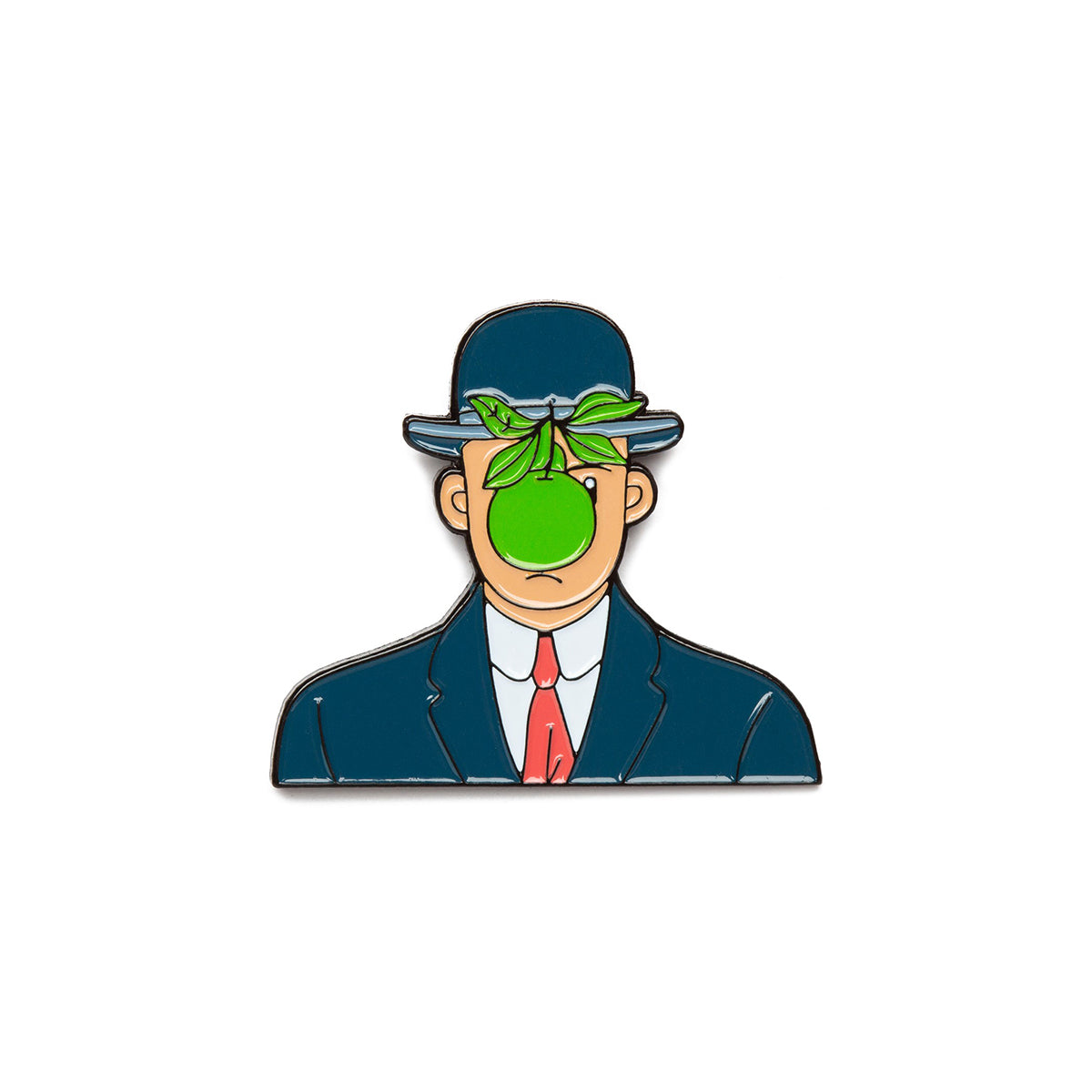 - The man standing in an overcoat and a bowler hat is Magritte himself, but his face is largely obscured by a hovering green apple. However, the man’s eyes are visible, discreetly peeking over the edge of the apple.