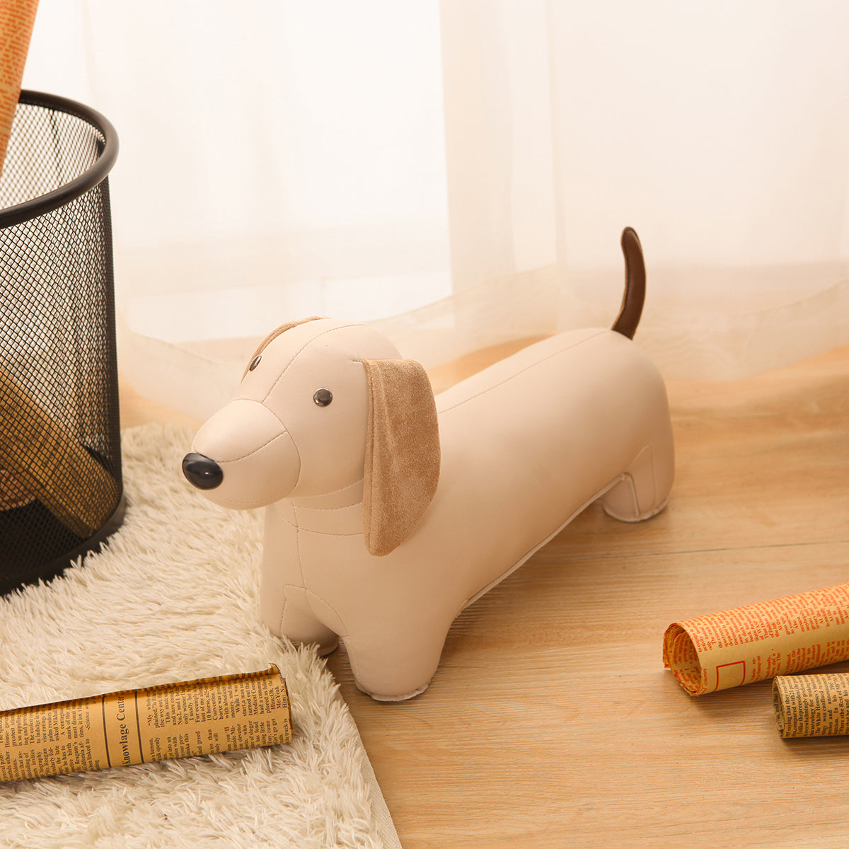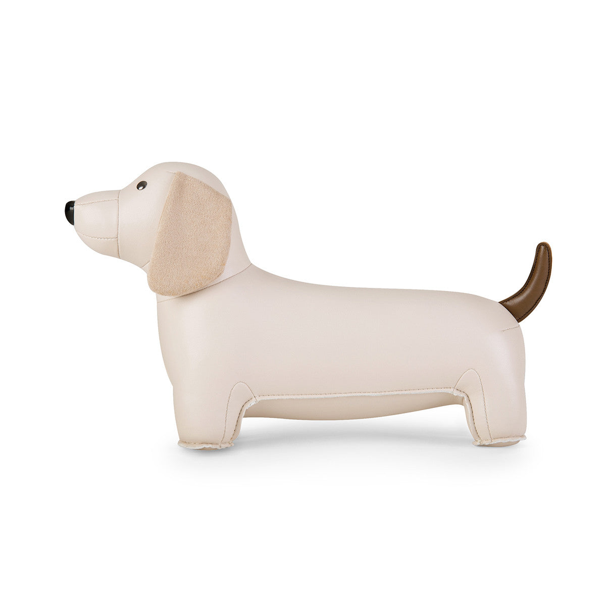 Weighty, minimal & whimsical bookend shaped like a Dachshund. Wheat.