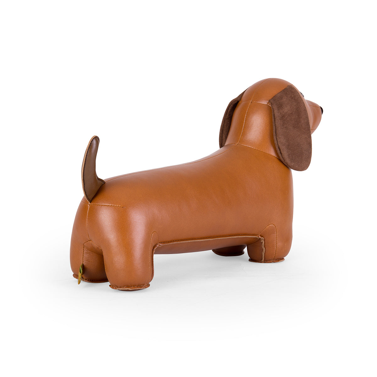 Mid-size, sturdy doorstop shaped like a dachshund.
