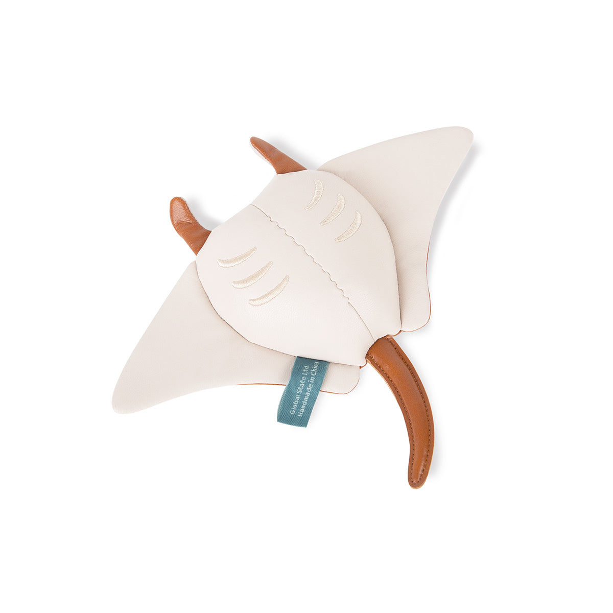 Small and whimsical paperweight shaped like a manta ray. Tan.