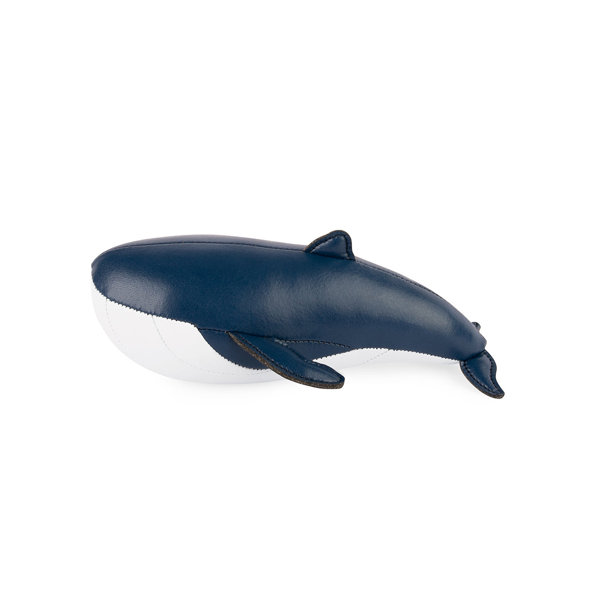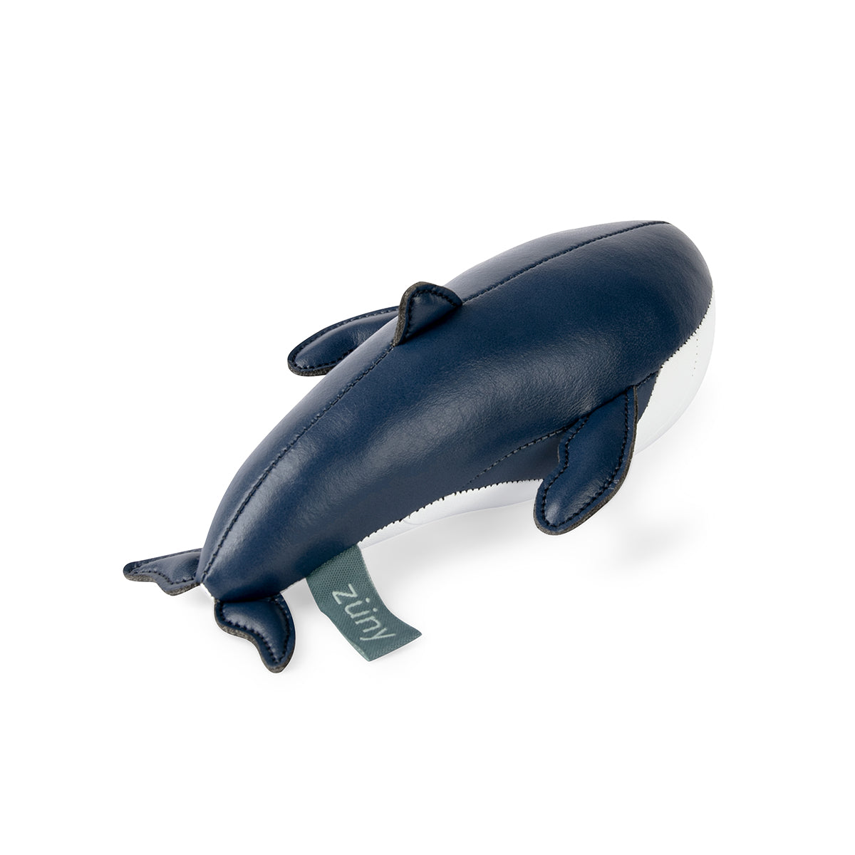 Small and whimsical paperweight shaped like a whale. Midnight blue.